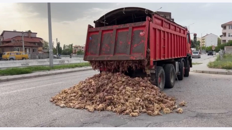Умрели пилета разнасят ужасяваща миризма по улиците на Хасково. Това става ясно от клип, публикуван във фейсбук от XNews. На него се вижда, как труповете на животните изпадат от каросерията на камион на улица "Банска", преди Икономическия техникум.