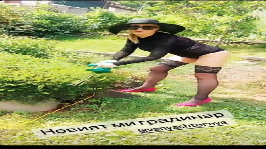 Ваня Щерева качи фотос в мрежата как се грижи за градината по жартиери и розови токчета и написа: „Новият градинар на Катето“, разказва Телеграф. Александра Богданска се включи в шегата, като тагна сина си под снимката: Е, Габриел Петканов, ела да видиш кръстницата ти какво прави!“. „Добре, че баща му на Габриел оня ден окоси тревата, да ме отмени малко…“, отвърна й Ваня.