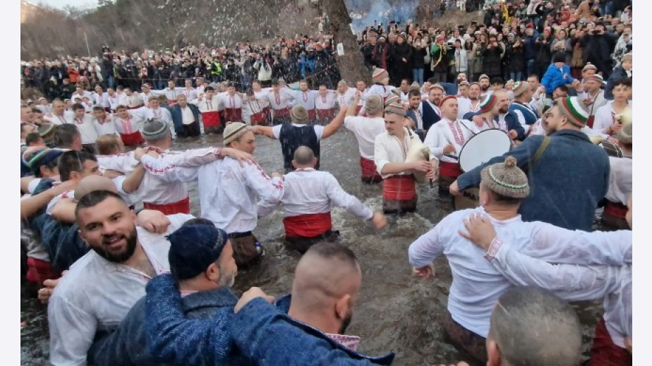 По традиция в ледените води на реката първо влизат местните, а след това и желаещите от гостите.