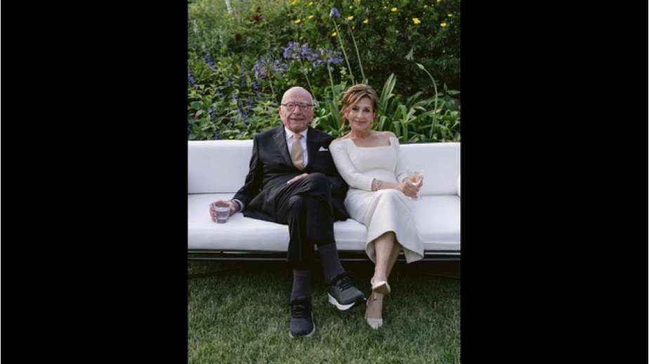 На снимки от сватбата, изпратени до медиите, Мърдок се усмихва до новата си съпруга, облечен с черен костюм и вратовръзка на жълти шарки.