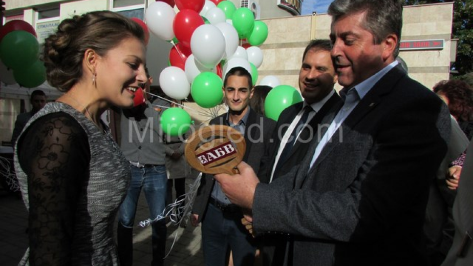 и получи символичен ключ с пожелания той да стигне до все повече симпатизанти по време на кампанията. Сувенирът бе връчен от най-младия кандидат за общински съветник Александрина Александрова. Тя е на 20 години и следва „Право”.