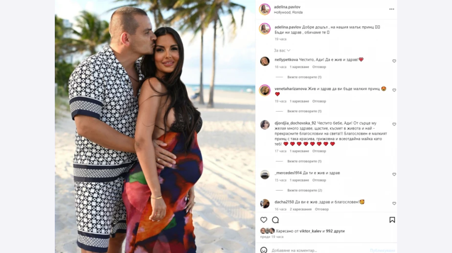 "Добре дошъл на нашия малък принц. Бъди ни здрав, обичаме те", пише Аделина, която в последните години не може да скрие щастието, което изживява до новия си мъж.