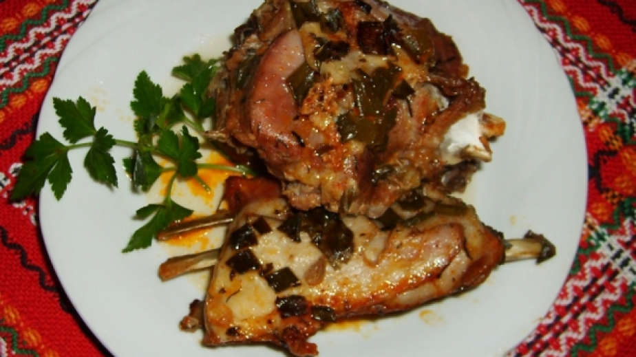 Нарежете агнешкото на порции и го сложете да се свари. Нарежете едро лукаи джоджена и ги разстелете на дъното на тавата.подредете отгоре сварено месо и го овкусете хубаво с червен пипер и сол. Залейте с бульона от свареното месо.Сложете тавата с агнешкото в жарта и похлупете с т.нар. връшник, като го засипете с жар. Изпечете агнешкото на жар до пълна готовност.