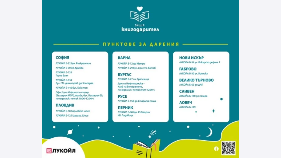 В Пловдив са разкрити два пункта, на които желаещите да дарят граждани могат да занесат своите книги – бензиностанциите ЛУКОЙЛ на Карловско шосе и на бул. „Цариградско шосе“.