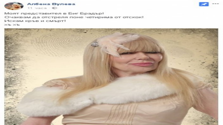 Албена Вулева изригна след старта на „Big Brother“ Most Wanted. След като вчера Фънки пожела смъртта на майка й Людмила Захажаева, сега щерка й Албена не му остана длъжница. Тя сподели преинтересен и злокобен пост в личния си профил във Фейсбук, пише БЛИЦ.