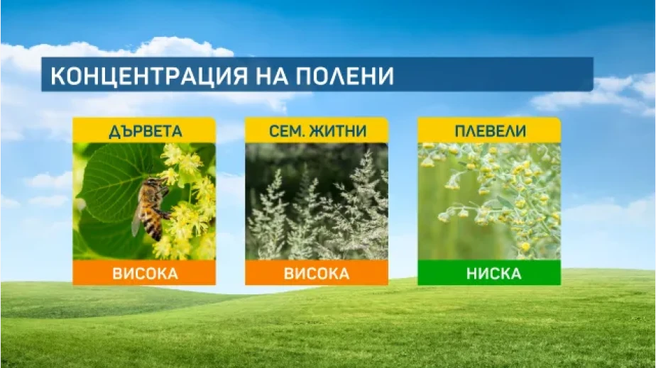 Тази година и в градовете полените от сем. Житни са с висока концентрация, защото косенето закъснява. В земеделските райони сега цъфти рапицата, алергичните е добре да не навлизат в жълтите полета, там няма да се чувстват добре.