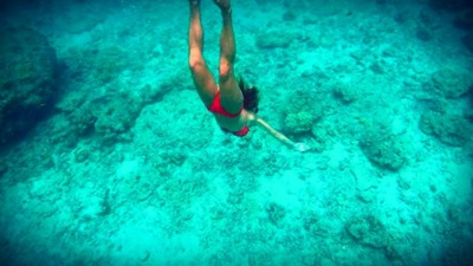 "Прекалено много говоря за да съм риба, но там долу се чувствам, като у дома си", е написала красавицата над фотоса.