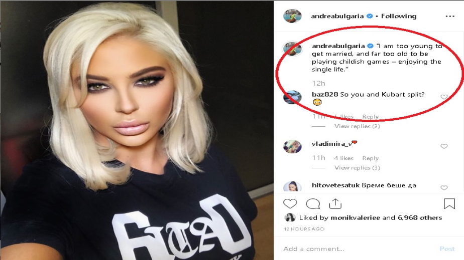 Това веднага предизвика въпроси от нейните фенове. Още първият коментар гласи: „Значи с Кубрат сте разделени?“.