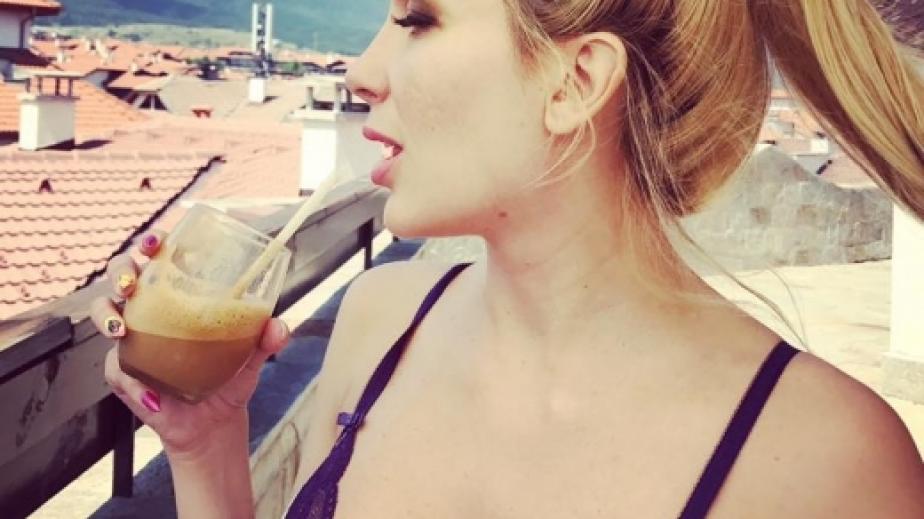 От текста към снимката става ясно, че тя е на почивка в Банско. Ето, какво написа тя: Сутрешното ми фрапе на любимото ми място в Банско, с невероятен изглед към връх Вихрен и връх Тодорка! И зимата на ски, и лятото с колелата, е прекрасно!