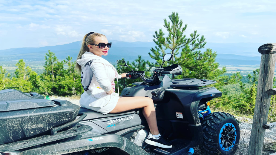 Антония Петрова яхна АТВ и обикаля с него из Банско. Младата майка, която роди преди по-малко от 2 месеца, се забавлява в Пирин планина, където са в момента със съпруга й Ивайло Батинков и двете им деца. Блондинката показа, че си е върнала формата от преди раждането и се похвали с дълги и слаби крака, видя Lupa.bg.