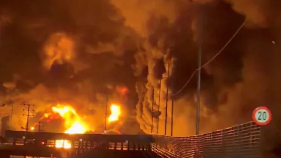 Хранилището се намира близо до важен нефтопреработвателен комплекс, но съоръженията на рафинерията „не са пострадали при военните удари“.
