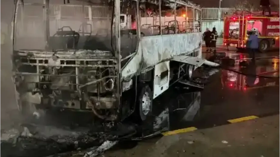 Екипи на пожарната в Одрин са пристигнали на мястото на инцидента и са потушили пожара, но автобусът е изгорял напълно.