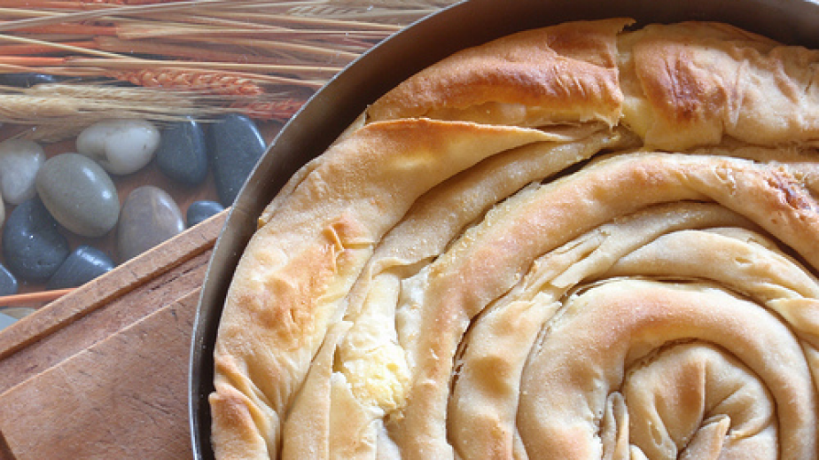 Картофите се обелват и сваряват. Докато са още топли, се заливат със зехтина и се намачкват с вилица. Прибавят се чубрицата и сол на вкус. Върху две кори едновременно се разпределя част от поизстиналата плънка, завиват се на охлюв и се подреждат в тавичка, намазана с маргарин. По същия начин се процедира с останалите кори и плънка до получаването на вита баница. Маргаринът се разтопява и се разпределя върху баницата. По желание може да се поръси с чубрица. Пече се в предварително загрята фурна на 180 градуса до зачервяване (около 35 минути).