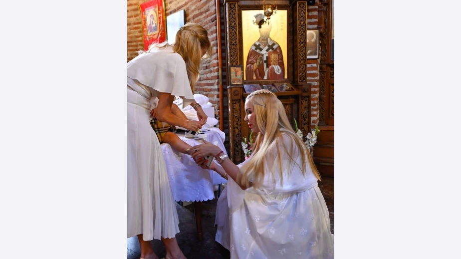 Заедно с Антония бе и съпругът й Ивайло Батинков, както и по-малкият им син - Благовест. Семейството е избрало датата 07.07.2025, а мястото е най-старият храм в София "Свети Георги"