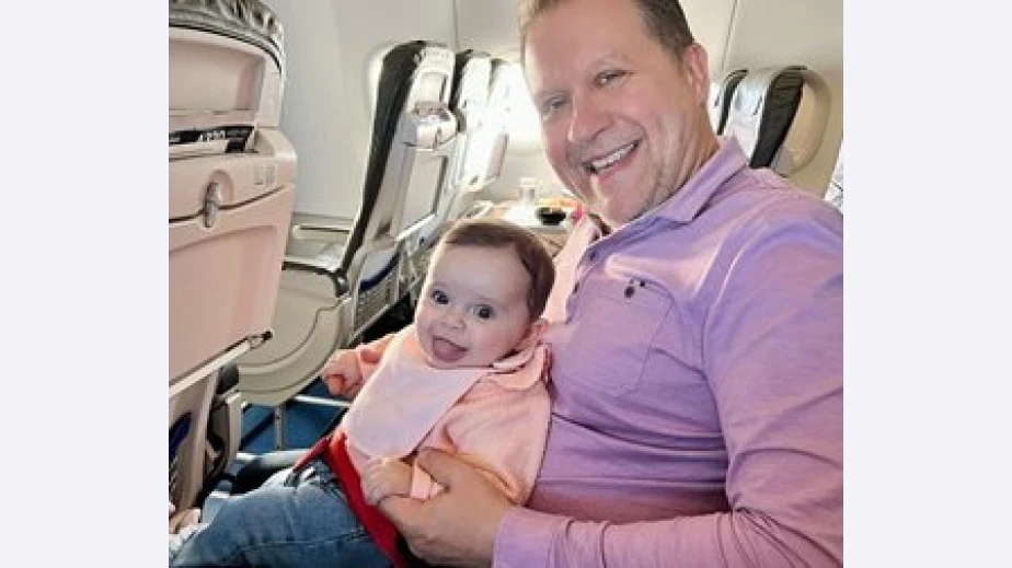 Бебето на Веско Ешкенази изумява пътниците и дори екипажите на борда с радостта, която демонстрира от летенето на самолет, пише Lupa.bg