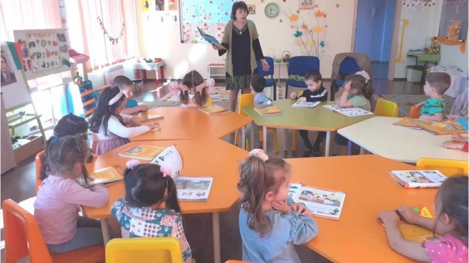 Изключително мила бе първата среща на библиотекари от Регионална библиотека „Св. Минков” с децата от ДГ „Вела Пеева” в кв. Тева. Тя бе последната от поредицата есенни читални на библиотеката в детските градини в града.