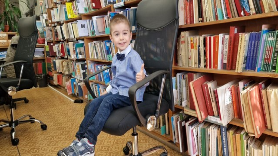 ЛЮБОМИР МИЛЧЕВ на 4 години - Той е един от най- малките читатели на Регионалната библиотека. Има читателска карта за детския отдел още като 2 годишен. Възпитаник е на ДГ „Родолюбче" .