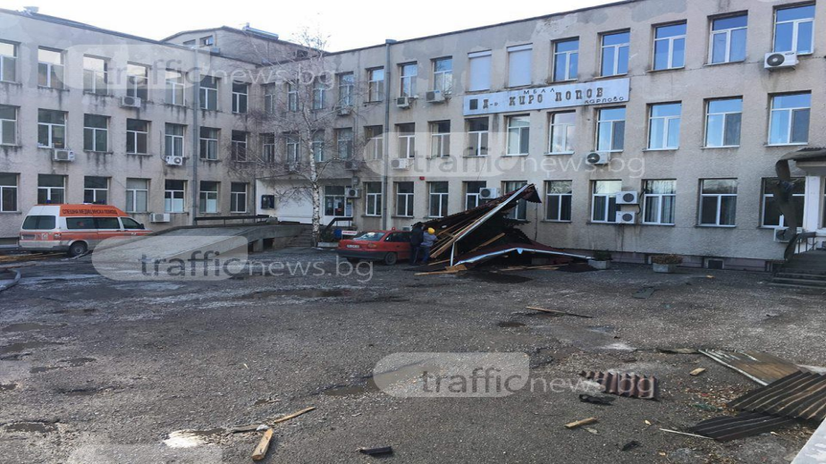 Обявиха бедствено положение в Карлово, предаде TrafficNews.bg. Това решение бе взето след заседание на кризисния щаб. Част от покрива на болница МБАЛ "Киро Попов" е паднал върху линейка.