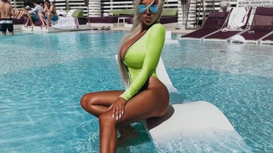 Блондинката показа пищните си форми, които едва са удържани от банския й.