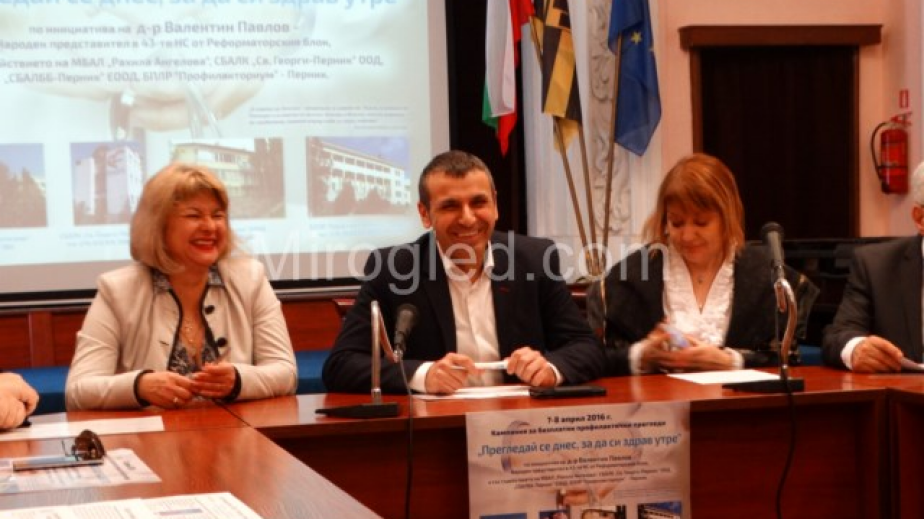 Стартира кампания за безплатни прегледи в Перник под инициативата на народният представител от Реформаторския блок д-р Валентин Павлов . Инициативата е по повод Деня на здравния работник 7 – април и ще се проведе под наслов „Прегледай се днес, за ди здрав утре“.