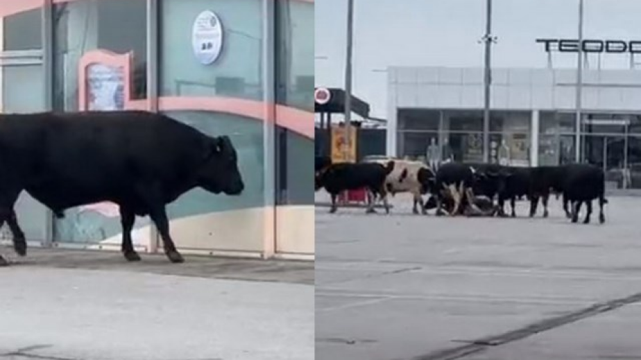 Заедно с него на паркинга на търговските обекти се разхожда и цяло стадо крави. Това се случва не къде да е, а на входа на София.