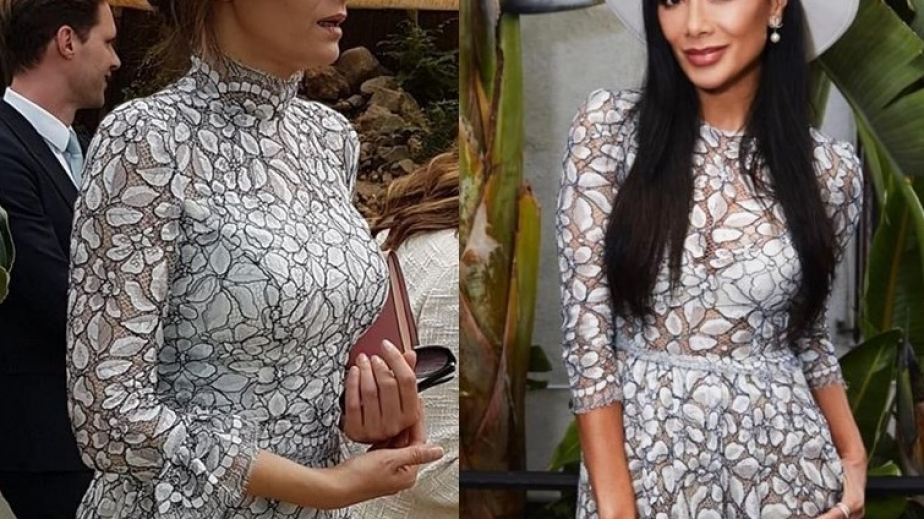 Бившата любима на Гришо настояла изрично десенът на тоалета й да е същият, с който съпругата на държавния глава блесна до Мелания Тръмп и Бриджит Макрон, тъй като много харесала визията на дрехата. Звездата нехаела, че този тоалет вече се е появявал на модните страници на медиите. Единственото, за което Никол настояла, е да не облича рокля до коляното, а разкроена до земята със затворено деколте, тъй като шапката й нямало да отива на къса рокля. Не за пръв път Шерцингер избира българската дизайнерка от Лондон Невена, за да се появи на светско събитие.