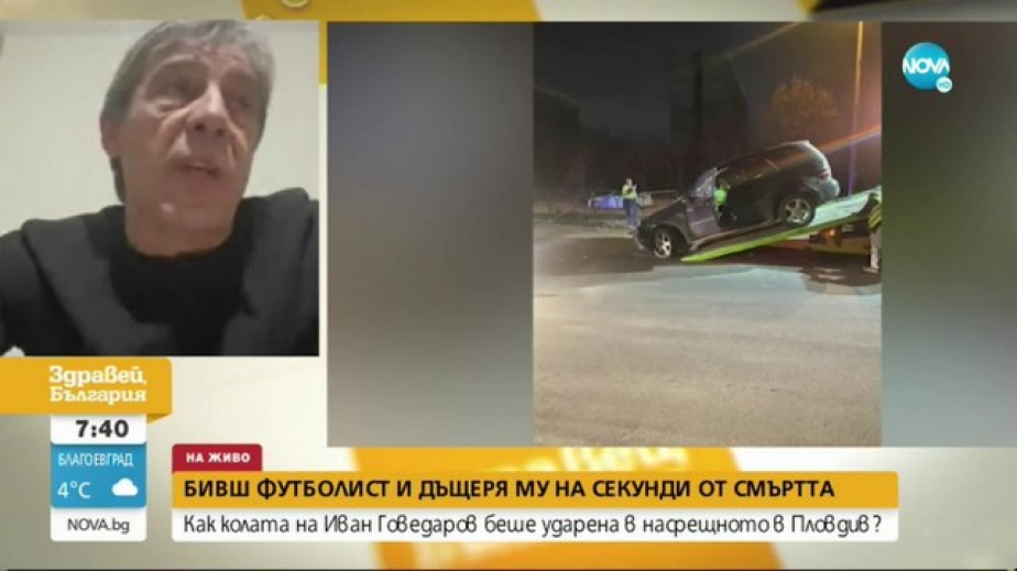 Бившият футболист на „Локомотив” (Пловдив) Иван Говедаров и дъщеря му са били на косъм от смъртта, след като 3-тонен джип ги връхлетял на „Кукленско шосе” в Пловдивско преди няколко дни. Джипът бил шофиран от млада жена, която помела няколко стълба и преградата по средата на платното и се обърнала по таван.
