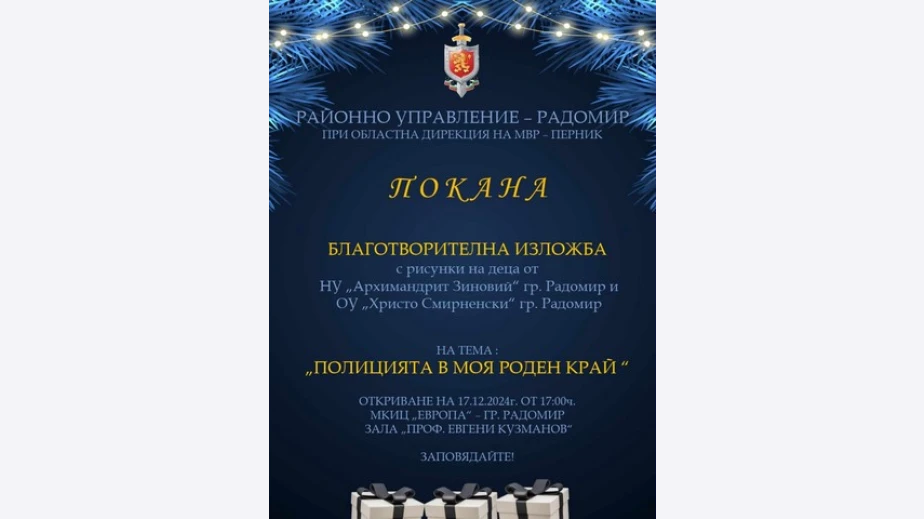 Стартът бе даден в навечерието на професионалния празник на българската полицията 8 ноември на тема: „Полицията в моя роден край“. Конкурсът, който има за цел да създаде интерес към професията на полицая, както и да насочи вниманието на подрастващите към органите на реда и тяхната ежедневна дейност, се проведе съгласно правила, утвърдени от началника на Районно управление – Радомир. Специална комисия оцени събраните рисунки. Участниците, чиито рисунки спечелиха първо, второ и трето място ще получат предметни награди. Рисунката, спечелила първо място е публикувана на годишния календар за 2025 г. на Районно управление – Радомир. РУ – Радомир планира всички събрани рисунки да бъдат подредени в изложба, а с продажбата им и тази на изготвения календар ще бъдат подпомогнати децата на загинали полицаи и пожарникари при изпълнение на служебния си дълг.