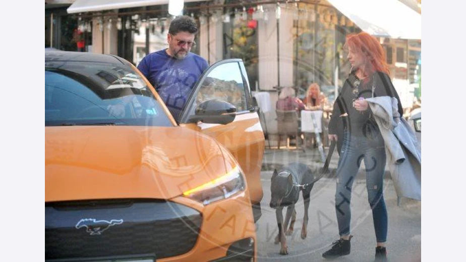 Като влюбени ученици, при това на публично място, се държат Асен Блатечки и не чак толкова новата му половинка Елеонора.