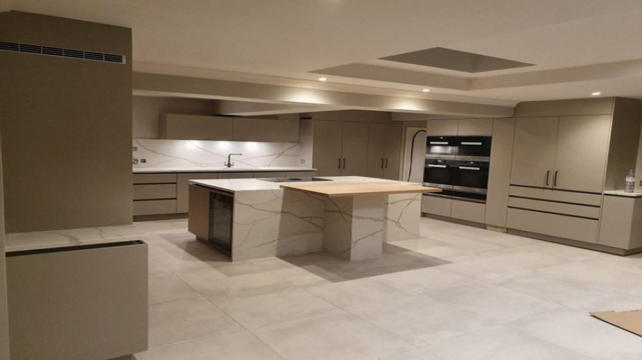Такъв е и един от последните му проекти, който е завършил на цена от 110 000 паунда. В цената влиза само дървенията и обкова, но не и уредите. Материалите, с които Горанов работи, са висококачествен мрамор за плотове, МДФ-плоскости и машини, които средностатистическият българин не е виждал на живо.
