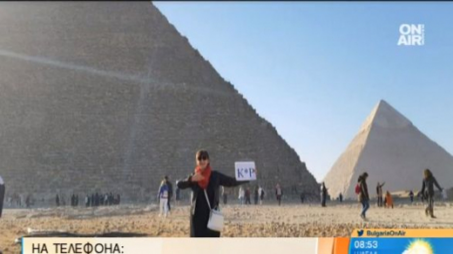 „Снимахме се с тези табели пред различните културни обекти, включително и пред Хеопсовата пирамида. Но тогава екскурзоводът ни каза: „О, Вие сте се подготвели, но някой вече си е остави отпечатъка“, спомня си жената.