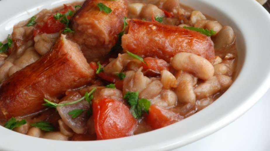 Приготвяне на Боб с наденица на фурна