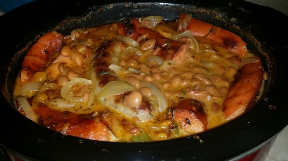 Приготвяне на Боб с наденички в Крок Пот