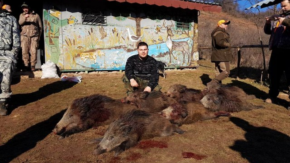 Прасетата са от по 45-50 килограма. Пръв помощник на ловците са и ловните кучета, които са заградили стадато, за да не се разпръсне.