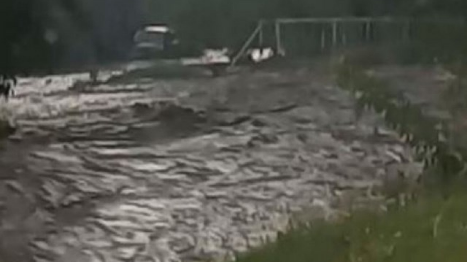 Местната река в карловското село Богдан е излязла от коритото си, след като цяла нощ проливни дъждове отново заливат Подбалкана.