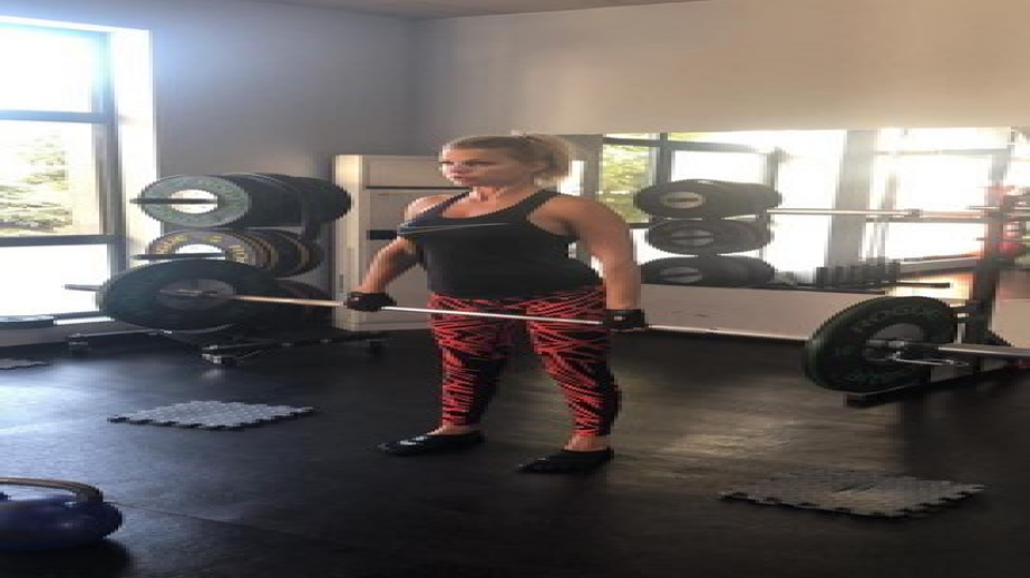 Когато няма време или възможност да тренира в зала, тя го прави в дома си, като за целта е оборудвала частния си фитнес с щанги, пише „Галерия“.