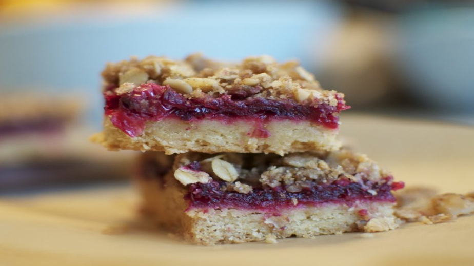 Приготвя се поръската като се омесват брашното, захарта и маслото. Оставя се в хладилника.