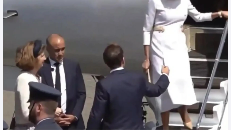 Резилът дойде отново на слизане от самолета. Какво се случи? Макрон подаде ръка на съпругата си, докато двамата слизаха от самолета за тридневното им държавно посещение, но Първата дама напълно го игнорира и ръката му увисна във въздуха.