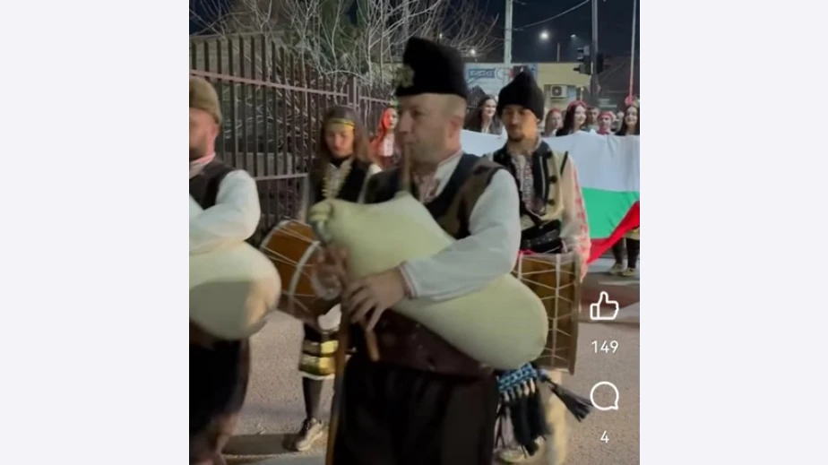 Шествието тръгна от двора на училището. То бе предвождано от гайдари. Ученици, облечени в народни носии, носеха и огромно българско знаме и портрети на велики българи. Шествието премина през централния площад „Кракра“ и предизвика възхищението на перничани.