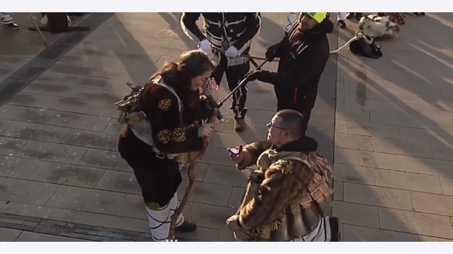Предложение за брак по време на дефилетата на 30-тото юбилейно издание на Международния фестивал „Сурва“ развълнува всички присъстващи на площада в Перник вчера. Александър Борисов и Симона Благоева от сурвакарската група на кв. "Църква" и вече са официално сгодени.