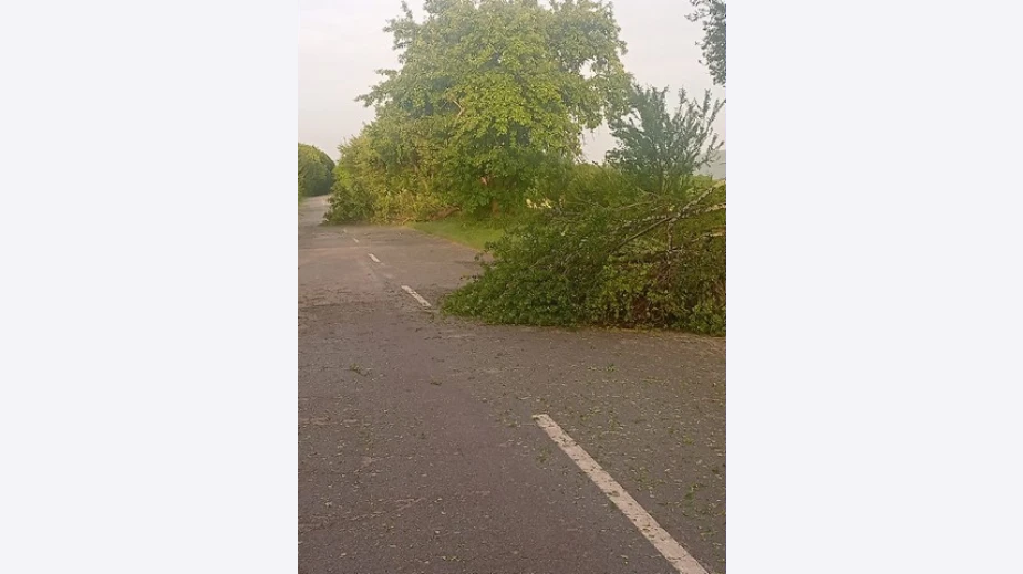 Пожарникарите са отстранявали клони и дървета от пътните платна в селата Радово, Ярловци, Милославци и Туроковци. Няма пострадали хора.
