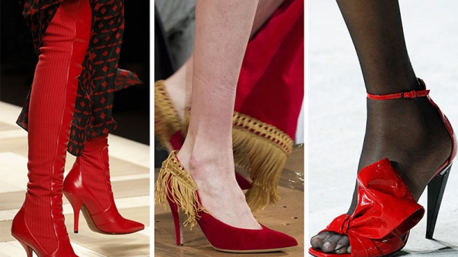 Червеното бе навсякъде, когато става дума за най-големите цветови тенденции за есен/зимата 2017-2018. Можем да се радваме на страхотни червени обувки в множество нюанси от Givenchy, Altuzarra, Fendi, Dolce & Gabbana, Bottega Veneta.