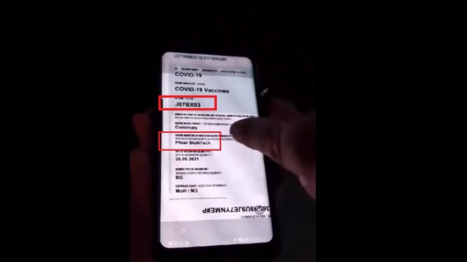 Насрещната проверка показа, че номерът на ваксината на „опитното зайче” наистина е идентичен с показания на дисплей на телефона, само дето е под бранда на Pfizer BionTech, не на Phizer.