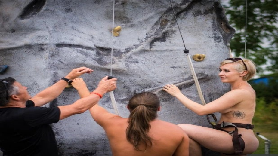Завеждат ме и да се упражнявам в скално катерене. Отново чисто гола. Питам един млад нудист какво се случва, когато падне мрак. Той ми отвръща: „Повечето хора си свалят всички дрехи, щом се напият, а аз си ги обличам”.
