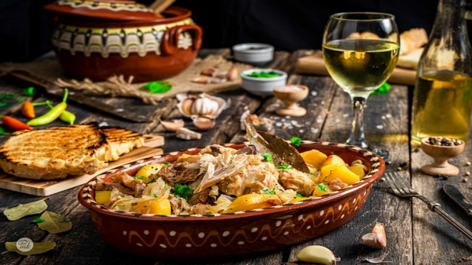 Налейте виното и две чаши вода. Захлупете съда и печете 4 часа на 170 градуса. Поднесете вкусния заешки чомлек топъл, с чаша бяло вино. /Рецепта на matekitchen.com
