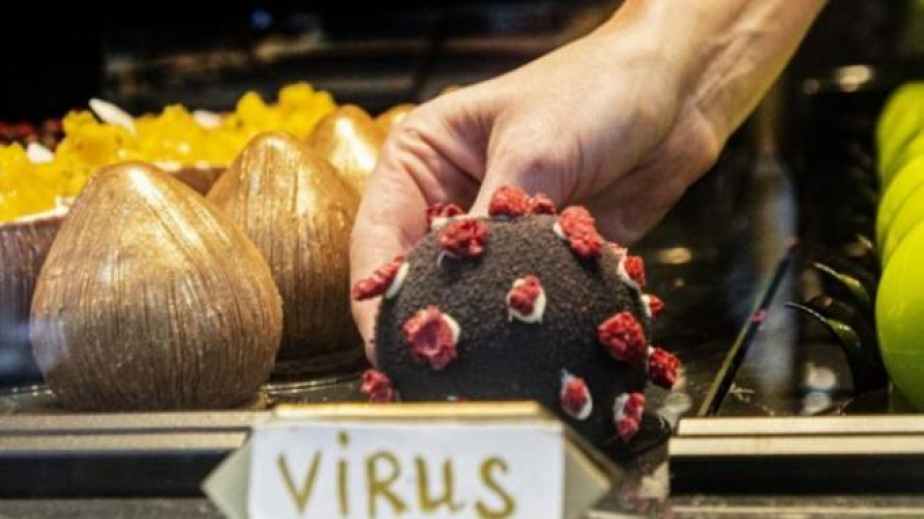 Майсторът на десерти Олга Будник каза, че идеята й е хрумнала по време на карантината през пролетта. „Намерих снимка на молекулата на коронавируса в интернет и измислих в детайли как ще изглежда десертът, шиповете му, какъв цвят ще бъде“, каза Будник пред Ройтерс./Източник: Лупа.бг