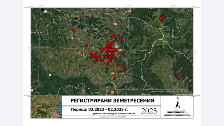 Онова което открихме беше направо потресаващо. Оказа се, че през последните 2 години, а именно от месец март 2023 г. до месец март 2025 г., в непосредствена близост до кариерите и язовир Студена са отчетени 45 слаби земетресения с магнитуд от 1.5 до 3 по скалата на Рихтер. Засечени в Сърбия, а тук удобно прикрити! В същото време, никъде в района, включително и в високо рисковата сеизмична зона около гр. Перник и София, не са отчетени никакви земетресения. Също така, преди тези последни две години, през 2022 г. има засечени само три слаби земетресения в този район!