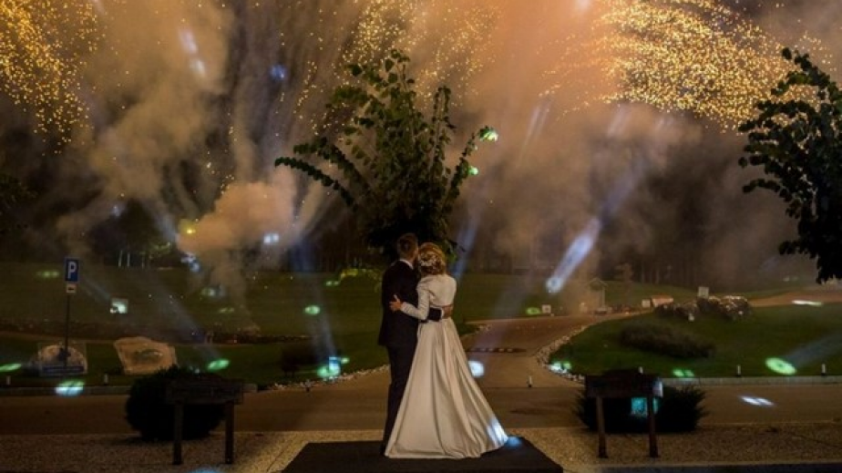 Специална агенция се погрижила за пищната украса на тържеството. Целият ресторант бил обсипан с цветя, а ритуалът по подписването на гражданския брак на двамата млади се състоял насред едно от голф игрищата, пред изящна арка, окичена с рози. Свидетели на размяната на халките станали най-близките хора на младоженците, за които организаторите изнесли бели пейки на тревата. По-късно към същинската част на сватбата се присъединили още приятели и роднини на гостите. Булката ги впечатлила със стилна дизайнерска бяла рокля и късо сатенено болеро в същия цвят. Веско не пропуснал да поздрави дъщеря си и новия си зет Евгени с кратка концертна програма и не скрил сълзите си от щастие, докато се любувал на първия им сватбен танц. Един от подаръците му към тях била внушителна 15-минутна заря, която влюбените изгледали гушнати и качени върху малък подиум.