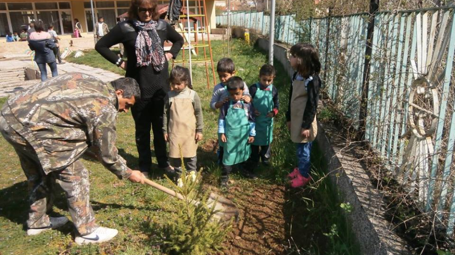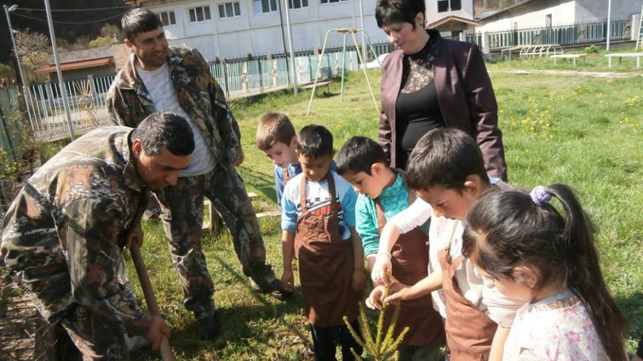 Децата и горските засадиха няколко елхички. В цветарника пред детската грани пък вече има пролетни цветя. В саденето се включиха заместник-кметът на общината Цветислава Цветкова и учителите от „Ален мак“.
