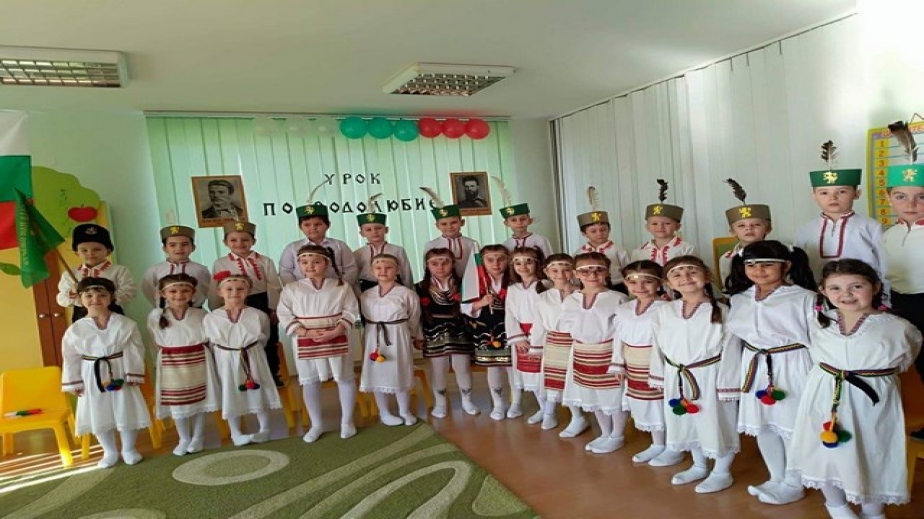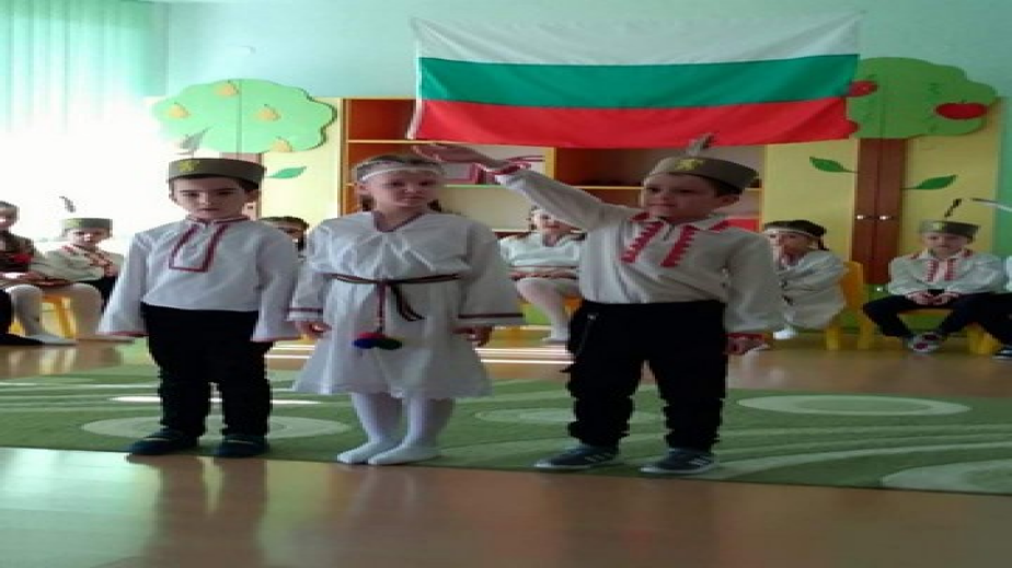 Четвърта група на Детска градина №5 "Вела Пеева" в кв Тева с директор Нина Крумова и под ръководството на учителките Маргарита Владимирова и Райна Димитрова тържествено отбеляза националния ни празник Трети март.